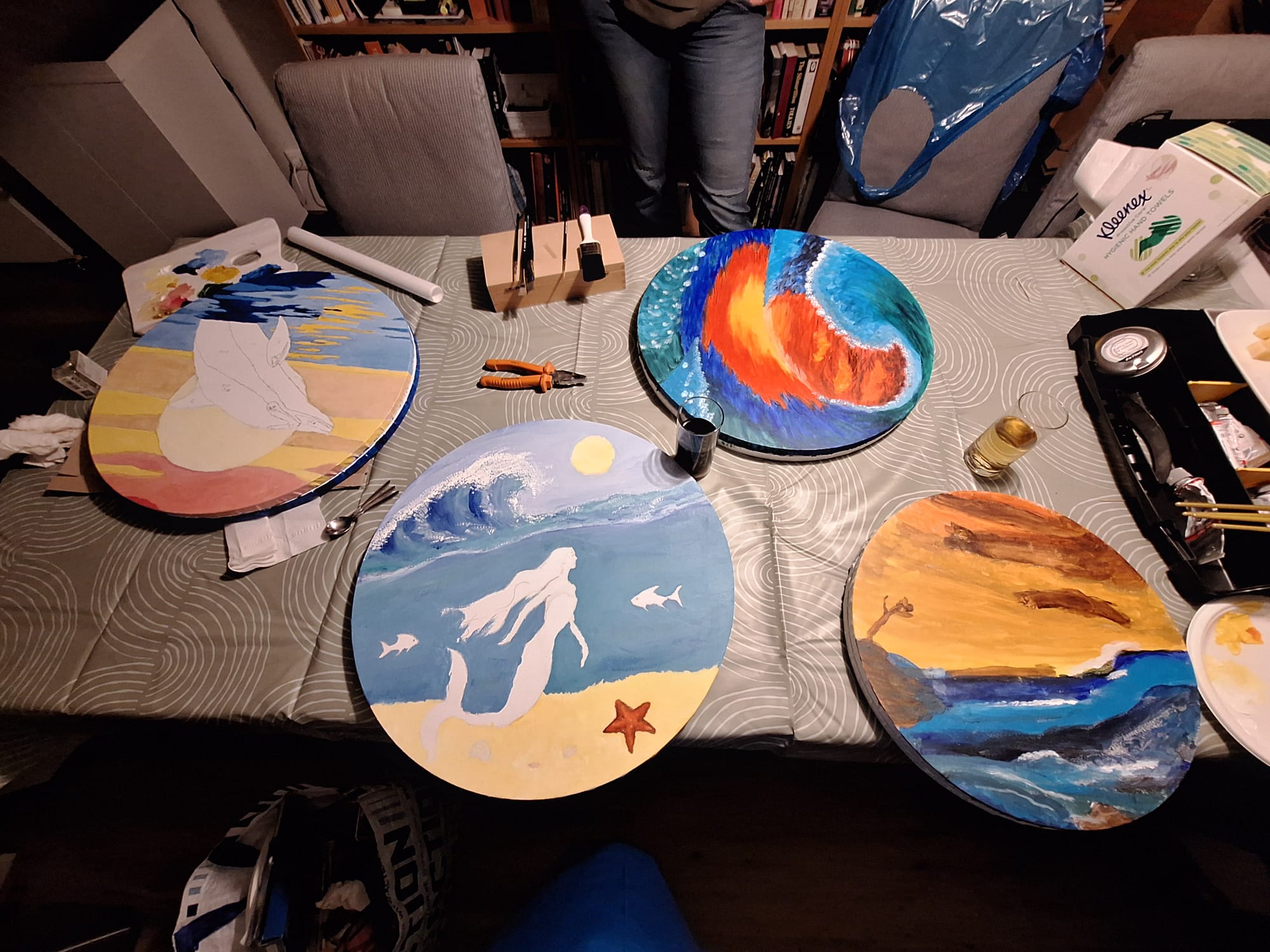 Vanavond hebben we hebben we lekker met z’n vieren de gemaakte oceandrums zitten beschilderen. Het was heel erg gezellig en de tijd was eigenlijk tekort om de drums helemaal af te krijgen. Maar onderstaand de foto’s van de avond zelf en de resultaten die zijn behaald.