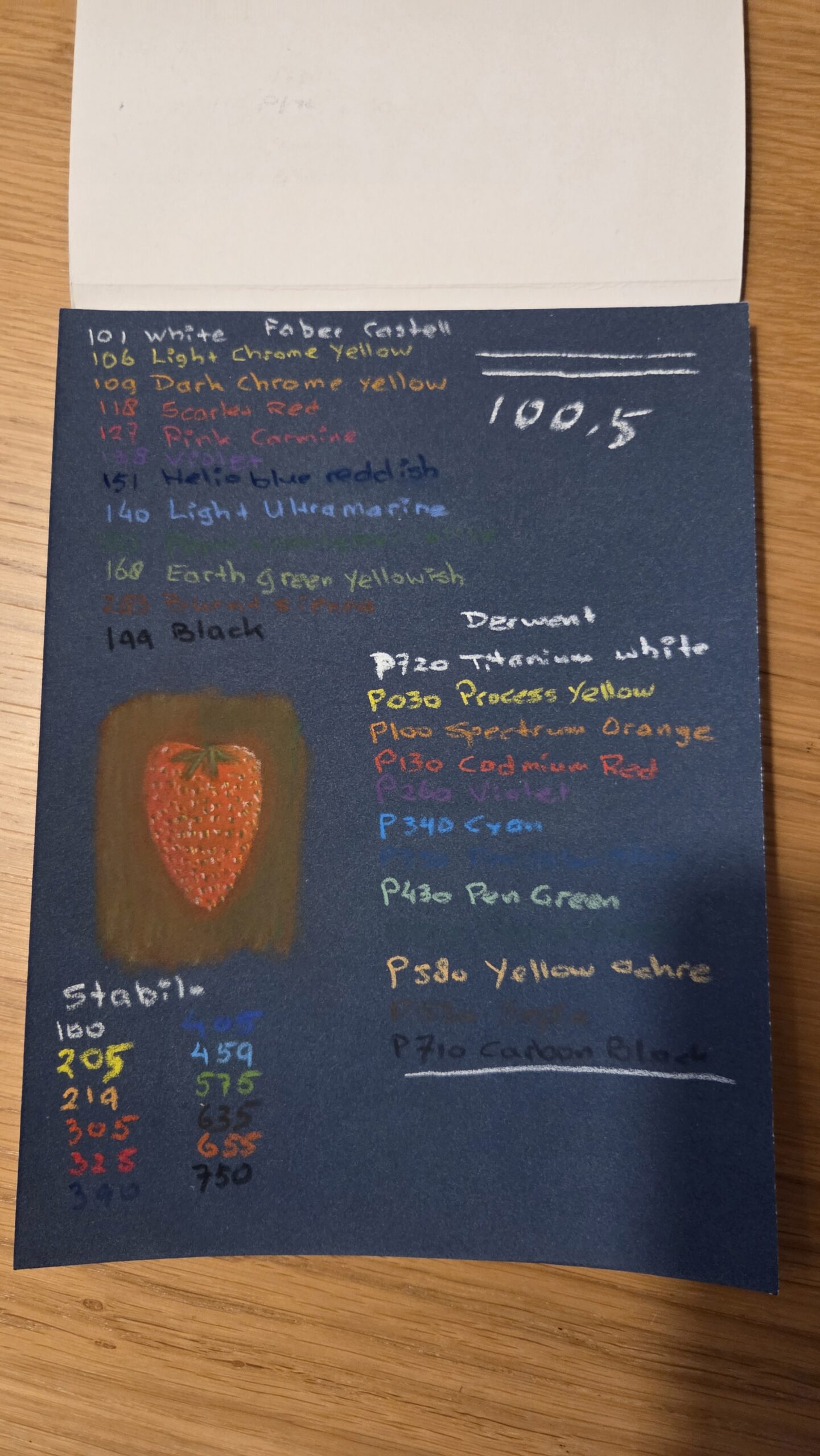 Naast de eerste test heb ik ook met ieder van de andere twee merken het nummer en de naam van de kleur opgeschreven. Voor de Stabilo set alleen de nummers, daar stonden geen namen bij. Alhoewel iedere set slechts 12 potloden bevat, heb ik op deze manier toch al een behoorlijk aantal verschillende kleuren.